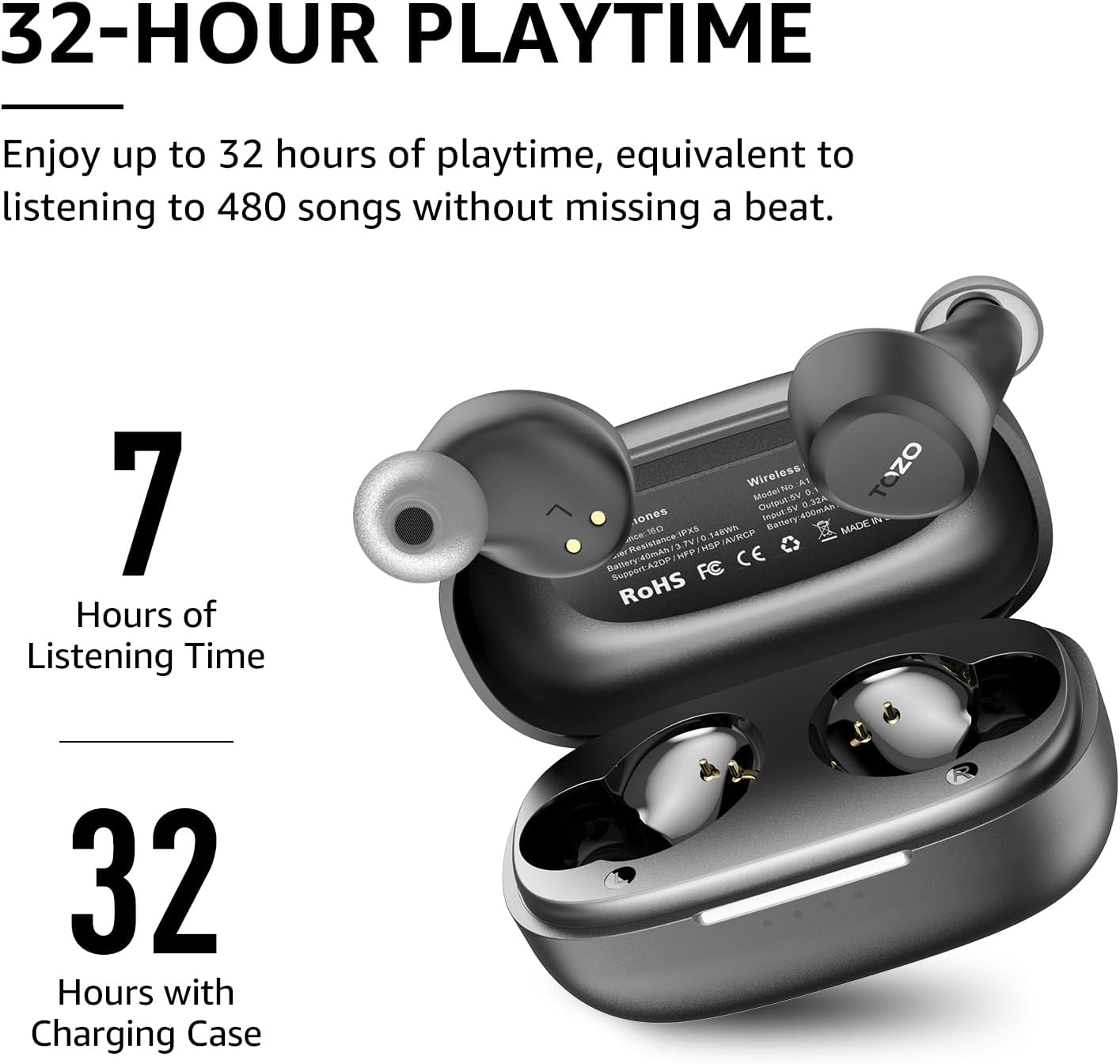 The included charging case provides up to 24 hours of playtime on a single charge, so you can enjoy your music without worrying about running out of battery. Plus, with 32 presets EQ customization available via the TOZO app, you can tailor the sound profile to suit your preferences and enjoy a truly personalized listening experience.